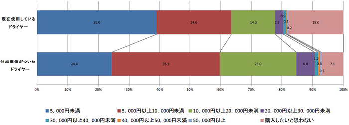 ◆付加価値が付いたドライヤーならば現在のドライヤーよりも高い金額で購入する人が多い傾向に