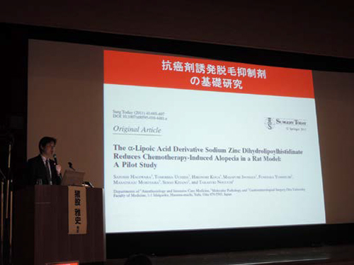 猪股先生による抗癌剤誘発脱毛抑制についての講演