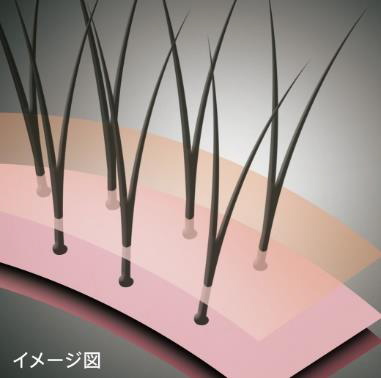 また、見た目の自然さを実現する毛植え技術として、フロント部に特殊技術で髪の根元を肌色に染めた毛材を採用することで額の皮膚と同質化させる「インビジブル毛植®」、微細なネットの編み目から植えた毛を引き抜くことで、毛植えの結び目を直接見えなくする「スカルプスルー毛植®」を施しており、リアルとナチュラルを極限まで追及しました。