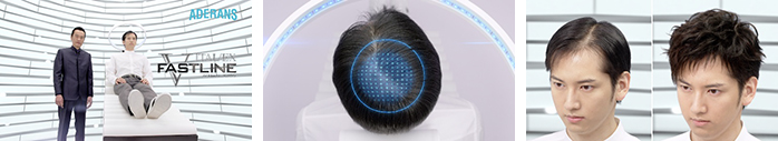 『バイタルEX ファストライン™』は、ライン状に数百本の毛材を植え込んだ特殊な素材を自髪に結び付けることで、自然に増毛ができる新商品です。ライン状にしたことで分け目やつむじに合わせて一気にボリュームアップすることができ、施術時間の短縮にも成功しました。1,000本あたり約4、5分のハイスピード※2で増毛ができます。また、結びつける毛材の量やスタイル、長さ、毛色も自髪に合わせてオーダーメイドでお選びいただけます。自髪が伸びて結着部分が地肌から離れてしまっても、アデランスが新開発したマイクロチップを使用した独自の取り付け方法で、元の位置まで簡単に引き下げることが可能です※3。
