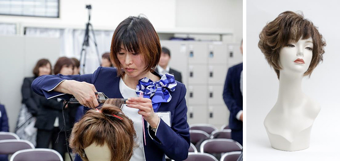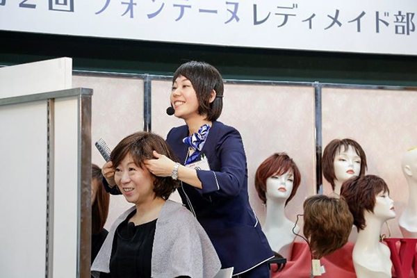 オーダーメイド・ウィッグの作製指示やカット技術等を競う大会は1980年より開催してきましたが、本大会はレディメイド・ウィッグ販売員を対象にした社内大会として、昨年初めて開催しました。レディメイド・ウィッグの販売では、お客様に似合うスタイルに調整する「技術力」はもちろん、ニーズをくみ取り、豊富なウィッグのバリエーションから似合うウィッグを提案する力など、「接客力」「似合わせ力」も大変重要な要素となります。そのため本大会では、技術力を競う「スタイリング部門」と接客力を競う「ロープレ部門」の2つを設けました。
