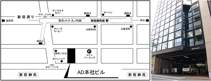 移転先は、新宿区新宿一丁目にある自社ビル「AD本社ビル」(旧:ADビル御苑)です。「AD本社ビル」は、1988年3月に完成し、当初は本社部門としての役割を果たしてきましたが、近年はオペレーションセンターなどのコールセンターが使用しております。2018年9月3日より、再び本社機能を有するビルとしてスタートいたします。また、2階には当社のCSR活動や商品を紹介するコーナーも新設致します。