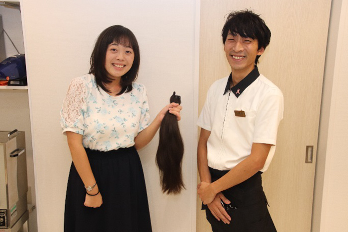 また、今回の登録に先立ち、当社入社1年目の廣瀬 眞優子が、都内の病院内ヘアサロンでヘアドネーションを行いました。廣瀬はドネーションにあたり、以下のようにコメントしています。「元々ロングヘアが好きで高校生からずっと伸ばしていたのですが、友人がヘアドネーションをしたことを聞き、せっかくアデランスに入ったのだから、会社に貢献できるような活動をしたい、との思いでドネーションを決断しました。」
