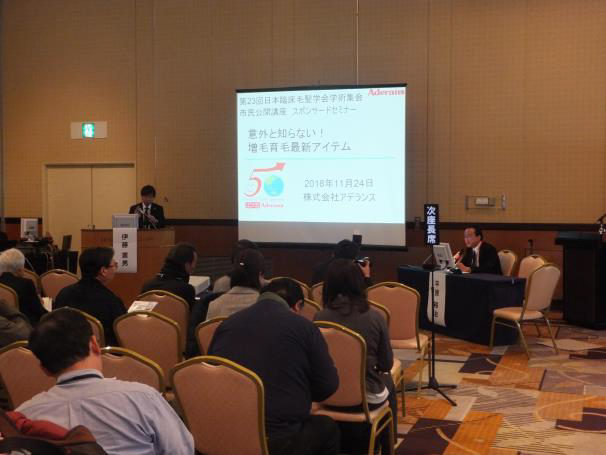 毛髪・美容・健康のウェルネス産業の株式会社アデランス(本社:東京都新宿区、代表取締役社長 津村 佳宏)は、2018年11月24日(土)~11月25日(日)、ホテルラングウッド(東京都荒川区)において開催された第23回日本臨床毛髪学会学術集会で、アデランスがスポンサーシップをとるランチョンセミナーと、同時開催された市民公開講座で市民向けスポンサードセミナーを共催しました。