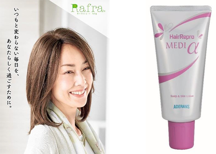 左:医療用ウィッグRafra(品番:RM22) 右:頭皮用保湿ローション「HairRepro MEDIα」
