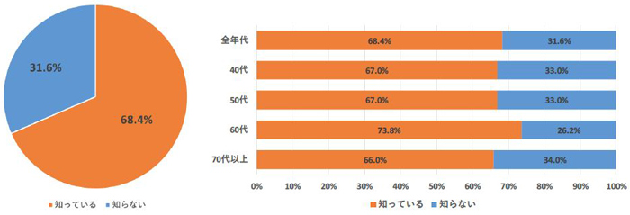 約7割の人が「グレイヘア」を知っていると回答しました。年代別でみると、60代の認知度が73.8%と最も高い結果となりました。