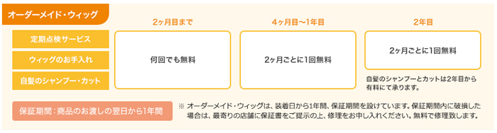 | 販売店 | 全国のアデランスサロン、レディスアデランスサロン、病院内ヘアサロン及びフォンテーヌ事業店舗(フォンテーヌ、アニーダブレー、ルネ オブ パリス)のオーダー取扱店 |