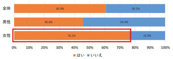 ヘアドネーションを知っているか尋ねたところ、全体で60.9%の人が知っていると回答。さらに、男女別でみると、男性が45.6%と5割を切ったのに対し、女性は76.1%と約3割も高い結果となりました。