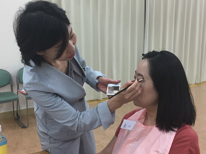 「障がい者向け メイクセミナー」、「シニア向け いきいきメイクセミナー」(*)は、女性の方を対象に、視覚に障がいをお待ちの方や60歳以上の方が、ご自身でメイクを楽しんでいただくためのセミナーです。