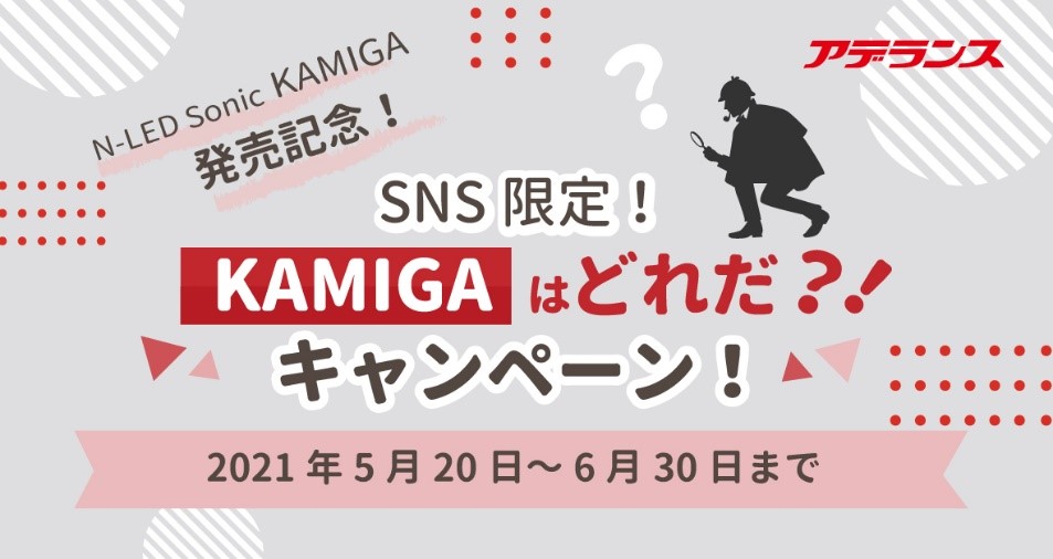 毛髪・美容・健康のウェルネス産業の株式会社アデランス(本社:東京都新宿区、代表取締役社長 津村 佳宏)は、電機メーカーのシャープ株式会社(本社:大阪府堺市、代表取締役社長 野村 勝明、以下 シャープ)と共同開発したヘアドライヤー『N-LED Sonic KAMIGA』(エヌ エルイーディー ソニック カミガ)の発売を記念して、「KAMIGAはどれだ?!キャンペーン!」を、5月20日(木)よりアデランス公式SNS上で開催します。