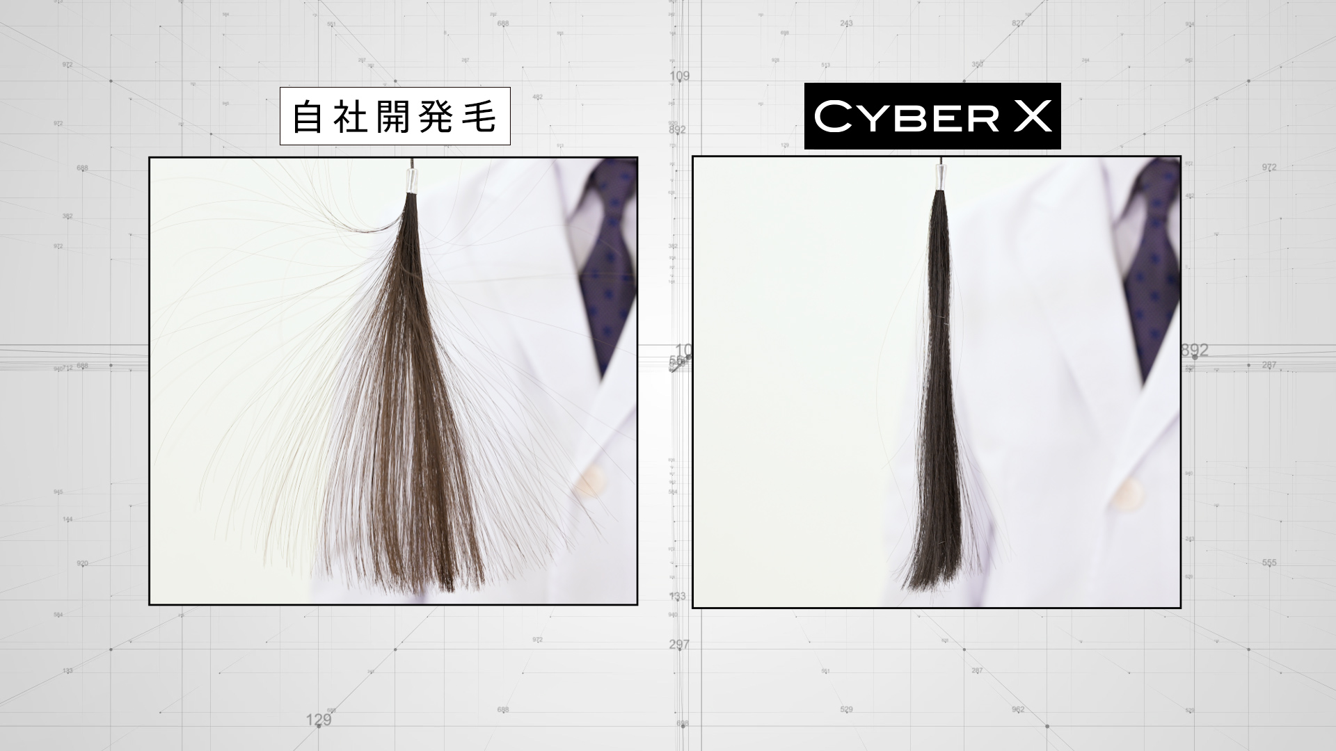 「サイバーエックス」は第三の機能性人工毛として、10月20日(木)から提供を開始する増毛新商品『ピンポイントライズ』(男性向け)と『ヘアアップαリベルテ』(女性向け)で採用します。今後ウィッグなどの当社主力商品に採用し、日本国内のみならず、米国、欧州などグローバルに展開していきます。