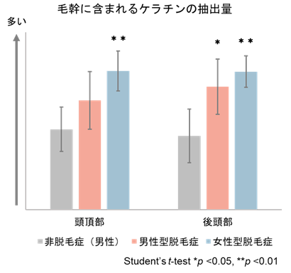 脱毛症の毛幹において、ケラチン抽出量が多かった。