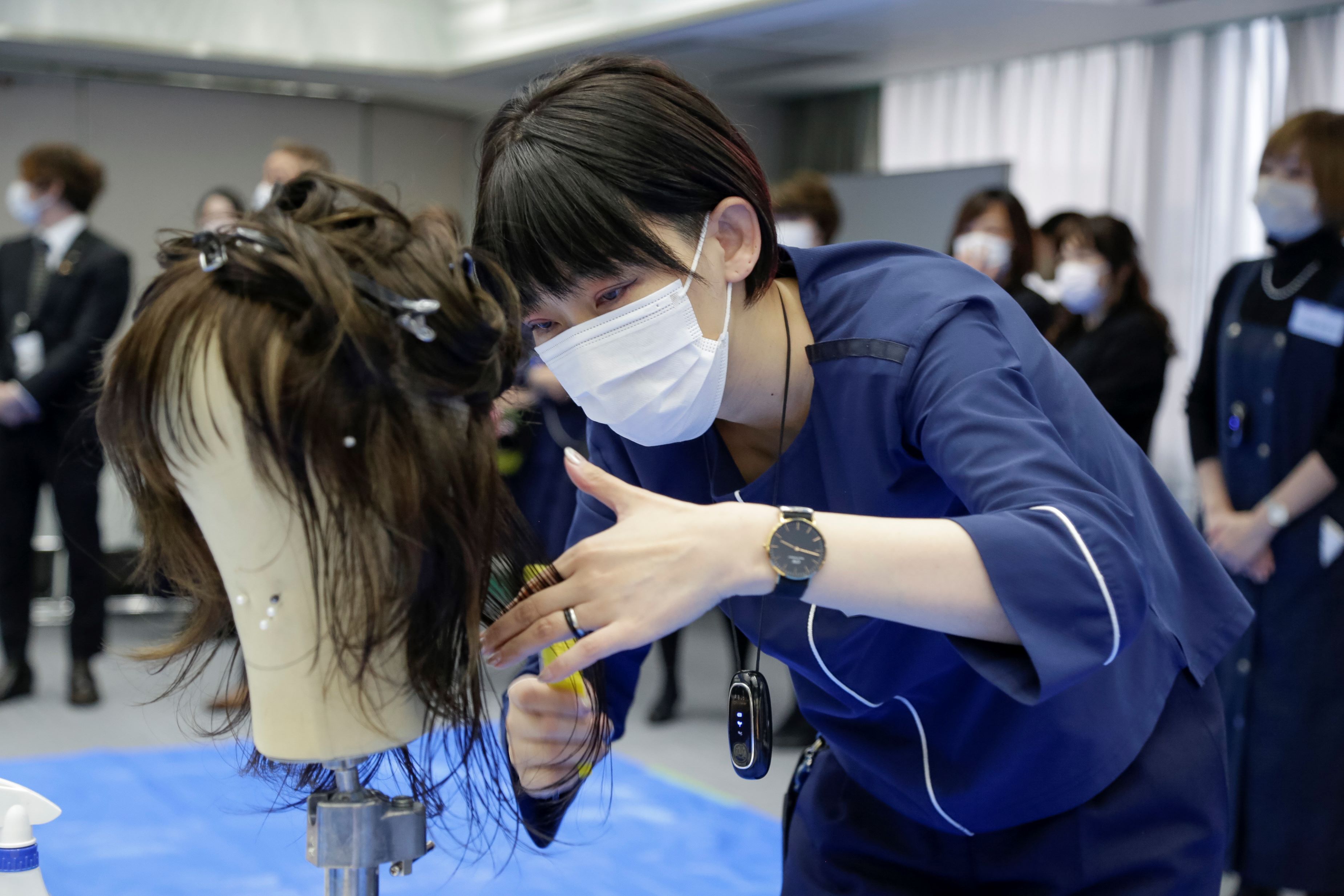 オーダーメイド・ウィッグの作製指示やカット技術等を競う大会は1980年より開催してきましたが、本大会はレディメイド・ウィッグ販売員を対象にした社内大会として、2017年に初めて開催しました。レディメイド・ウィッグの販売では、お客様に似合うスタイルに調整する「技術力」はもちろん、ニーズをくみ取り、豊富なウィッグのバリエーションから似合うウィッグを提案する力など、「接客力」「似合わせ力」も大変重要な要素となります。そのため本大会では、接客力を競う「ロープレ部門」と技術力を競う「スタイリング部門」の2つを設けています。