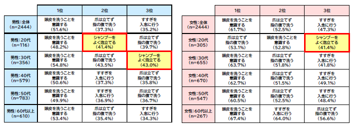 若い世代は男女ともにシャンプー時の“泡立て意識”が高い結果に