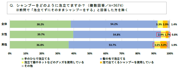 ◆女性よりも男性の方が、シャンプーの泡立てを工夫している傾向も