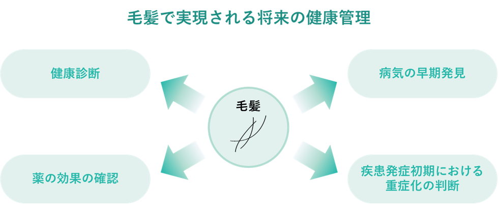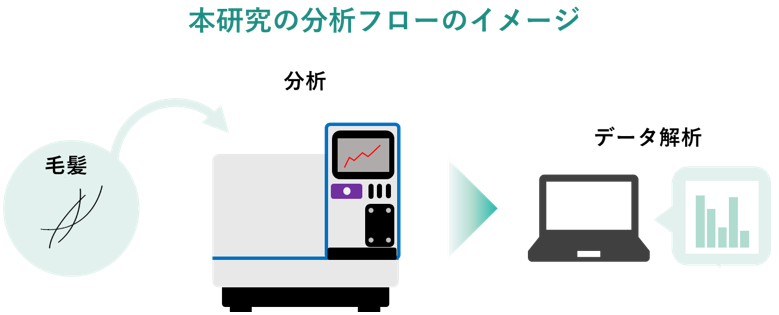 そこで、当研究グループは健康診断のこれらの課題を解決する新しい診断方法として「毛髪検査」に着目しました。毛髪検査は、病院に行かなくても毛髪を郵送するだけで検体が受渡できる利便性や、血液や尿よりも長期間安定した健康データの取得が可能といったメリットがあると考えています。当研究グループは、毛髪を用いて、科学的な根拠に基づく、安定した健康管理指標の確立に向けて研究に取り組んでいます。