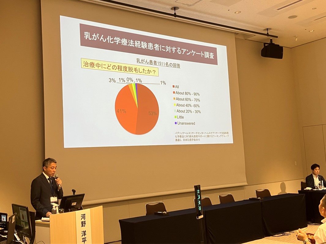 セミナーテーマは「最適な抗がん剤脱毛治療を探る」で、抗がん剤治療による脱毛を抑制する研究に関する知見が報告され、セミナー会場は満席の大盛況となりました。