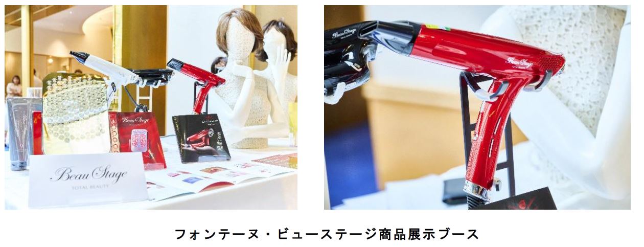 当日はフォンテーヌ、ビューステージのブースを設置し、当社ウィッグや「BeauStage ELEGANJET(ビューステージ エレガンジェット)」をはじめとする美容商品も展示しました。