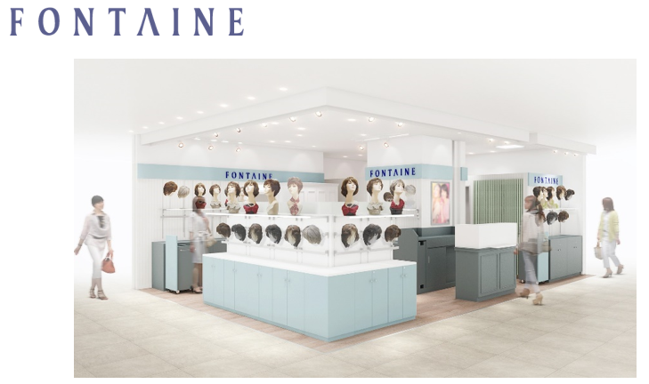 女性用レディメイド・ウィッグブランド「フォンテーヌ」は、全国の百貨店や商業施設に169店舗(2023年7月末時点)展開し、ウィッグでよりおしゃれを楽しんでいただけるくつろぎの空間を提供し、おもてなしの心で全てのお客様をお迎えします。