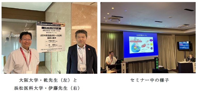 会期中の8月20日(日)にアデランス共催のセミナー「LEDの美容皮膚科への応用:基礎と臨床」が実施され、大阪大学大学院医学系研究科 皮膚・毛髪再生医学寄附講座 特任教授の乾 重樹先生が講演し、浜松医科大学医学部 皮膚科学講座 准教授・病院教授の伊藤 泰介先生が座長を務めました。