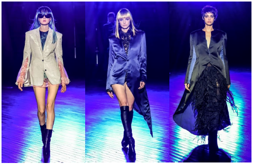 今季は「Bitter Sweet Romantic」をテーマに、パリの2024年春夏ファッションウィークを前に、東京にて先行公開。ロマンティックな恋に落ちたときの甘い瞬間や、淡く苦い思い出、燃え上がるような情熱を衣服に落とし込みました。衣服には“自分の気持ちを自由に伝えてほしい”というリンシュウ氏と妻のりえこ氏の思いが込められています。アデランスグループ・専属ウィッグデザイナーのNORIKOがRYNSHUとウィッグのデザインを共同創作しました。