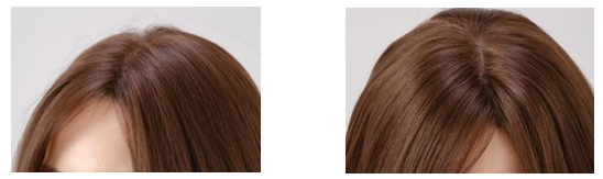 根元の立ち上がり、分け目が通常の商品と比べ、より自然な仕上がりです。また、手植