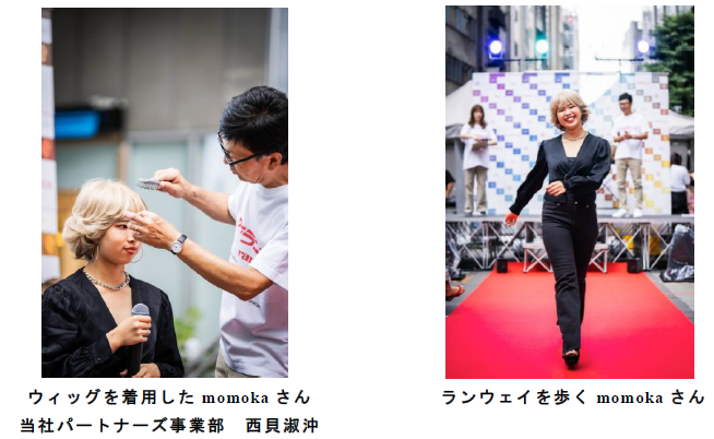 当日は、当社社員がパレードに参加したほか、当社のウィッグを着用したファッションショー、ウィッグの試着体験などを実施しました。ファッションショーでは、高校生モデルのmomokaさんらが当社のウィッグを着用し、ランウェイを歩きました。
