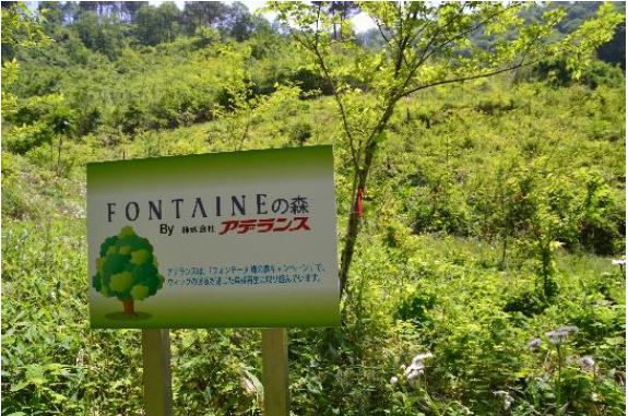 「フォンテーヌ緑の森キャンペーン」は、期間中にウィッグ回収にご協力いただいたお客様の売上の一部を利用し苗木の植林を行うものです。植林支援は、環境コミュニケーションを推進する「ツバルの森」を通じて、山梨県内の山林地域に「フォンテーヌの森」を設置し苗木を植林しています。既に1,200本以上を植林しており、2009年に初めて植えた苗木は、現在では大人の背丈を超えて2メートルほどにまで成長しています。