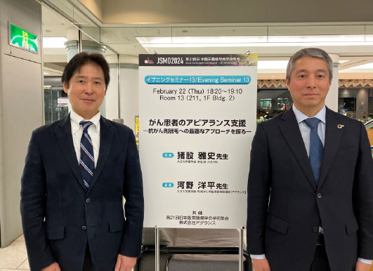 毛髪・美容・健康のウェルネス事業をグローバル展開する株式会社アデランス(本社:東京都品川区、代表取締役グループ CEO 津村 佳宏)は、2月22日(木)~2月24日(土)に、名古屋国際会議場(愛知県名古屋市)において開催された第21回日本臨床腫瘍学会学術総会で、アデランスがスポンサーシップをとるイブニングセミナーを共催しました。アデランスが本学会にセミナー共催するのは、今回が初めてとなります。
