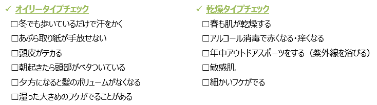 ・オイリータイプチェックでいずれかまたは複数当てはまった人は、オイリーな傾向があります。