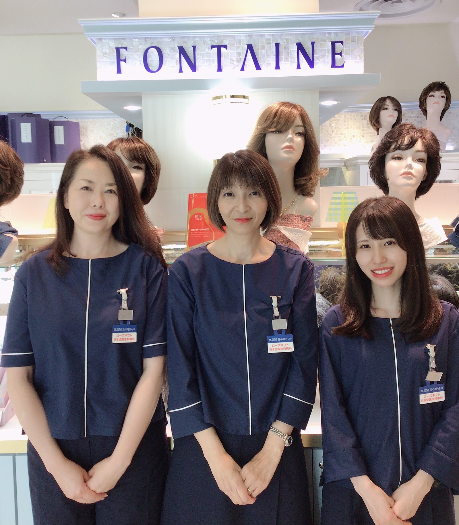 女性用レディメイド・ウィッグブランド「フォンテーヌ」は、全国の百貨店や商業施設に167店舗(2024年6月末時点)展開しています。美しくなった「玉川髙島屋 フォンテーヌ コーナー」で、豊富なウィッグを心行くまでご体験ください。