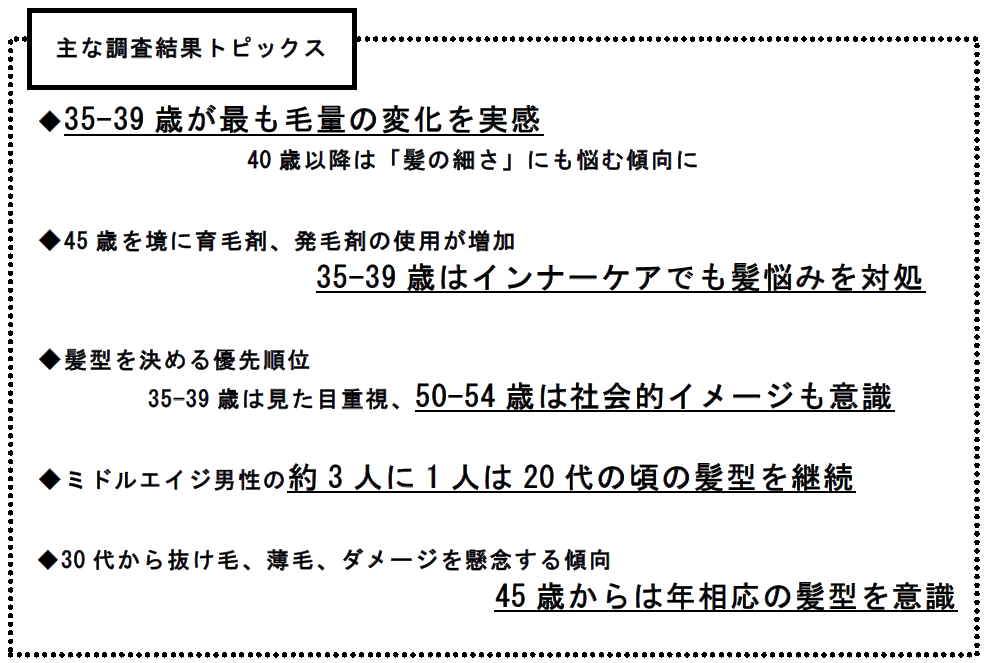 ◆30代から抜け毛、薄毛、ダメージを懸念する傾向 45歳からは年相応の髪型を意識