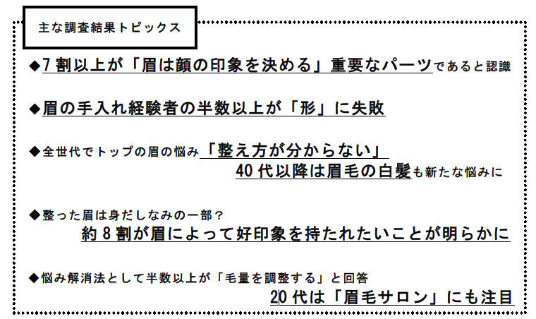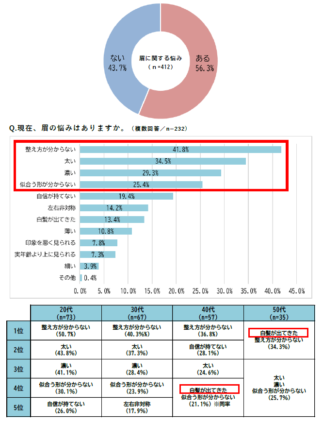 ◆全世代でトップの眉の悩み「整え方が分からない」40代以降は眉毛の白髪も新たな悩みに