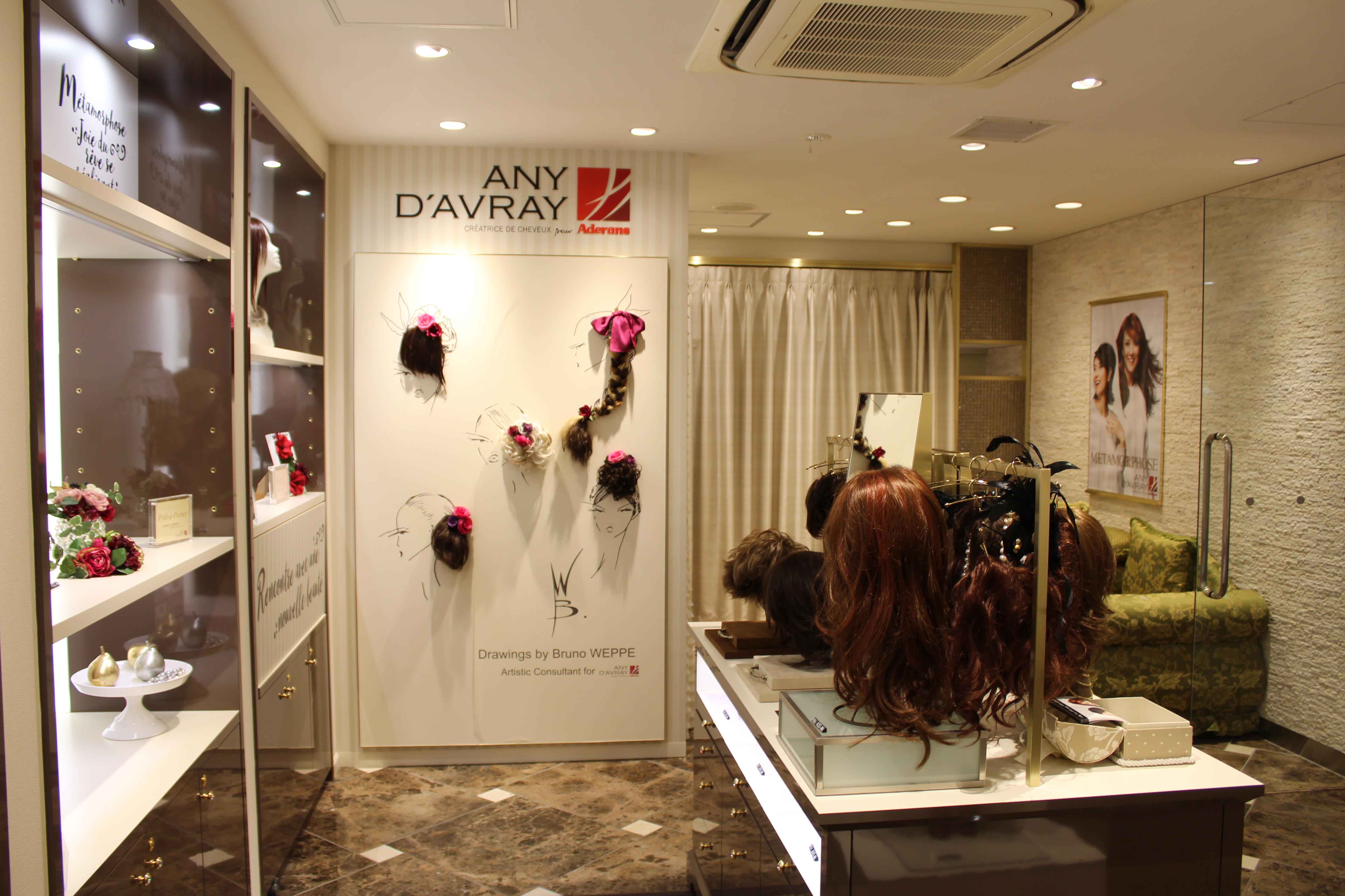 銀座ならではの洗練された空間に、レディメイドからオーダーメイド、おしゃれから医療用までウィッグをバリエーション豊かに取り揃えております。