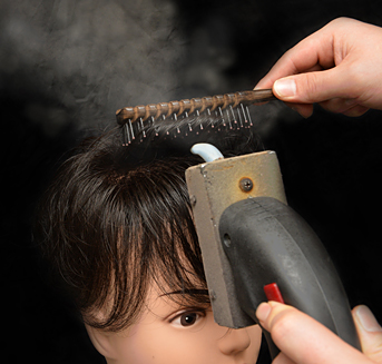 - カールの強弱やボリューム調整に用います。摩擦やブラッシングによる毛髪素材へのダメージを防止し、常に自然な状態をキープできるようにフォローするトリートメント剤を定着させることもできるアデランス専用のメンテナンス機器です。